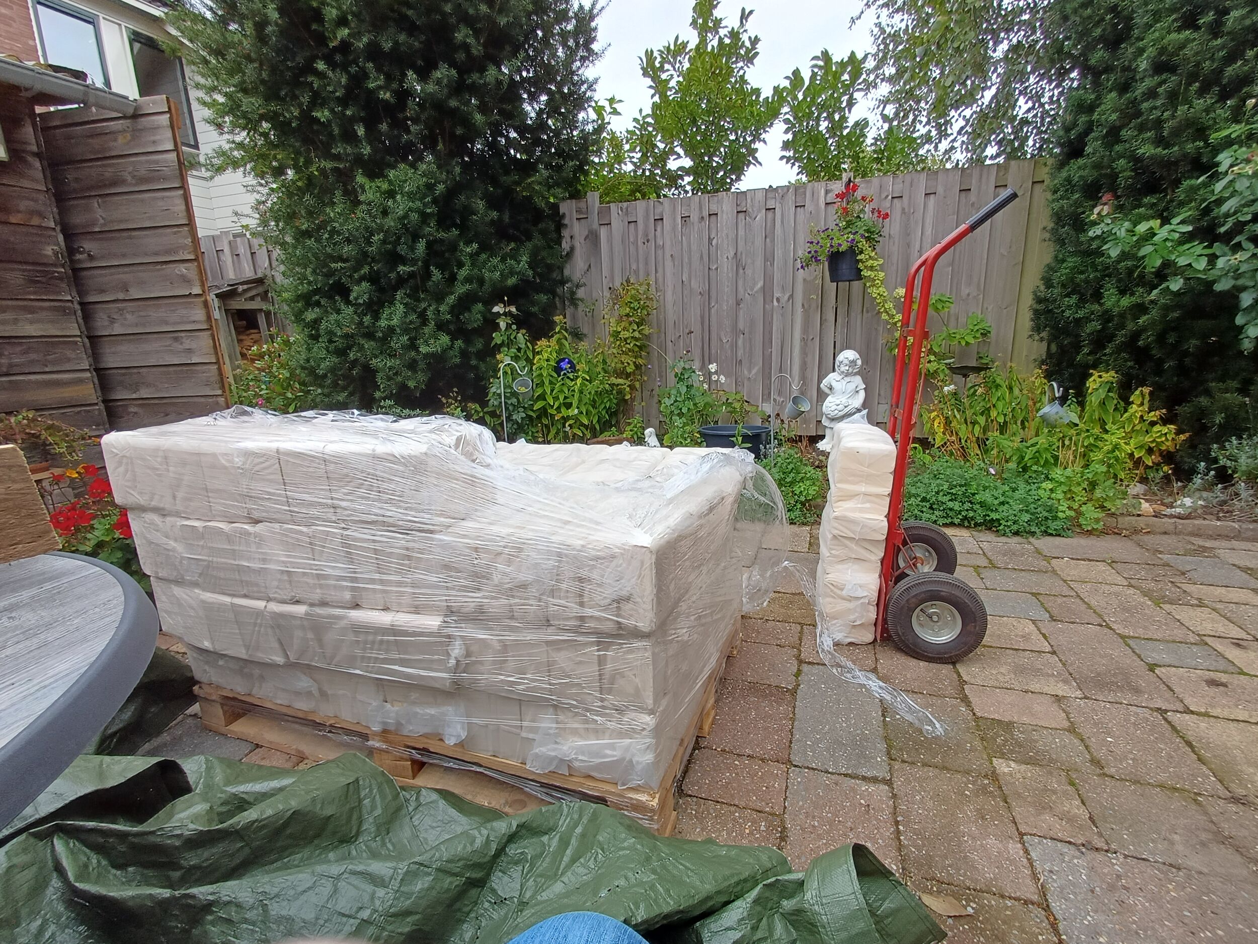 Wij waren zelf niet thuis en de levering is onder de carpoort, aan de achterzijde geplaatst. Dit was medegedeeld bij de bestelling.